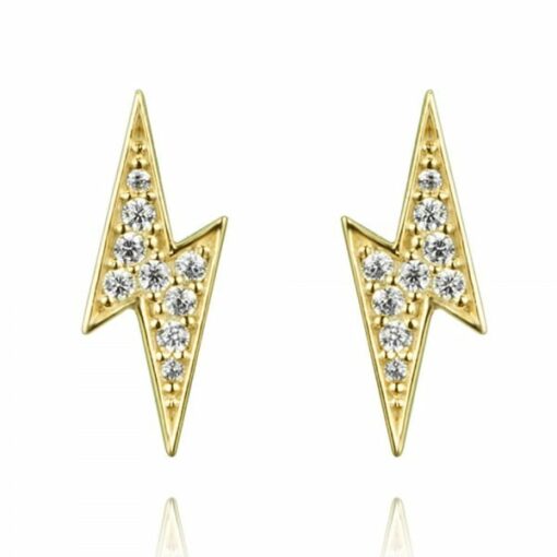 Pendientes mini en plata de ley chapados en oro con forma de rayo y circonitas