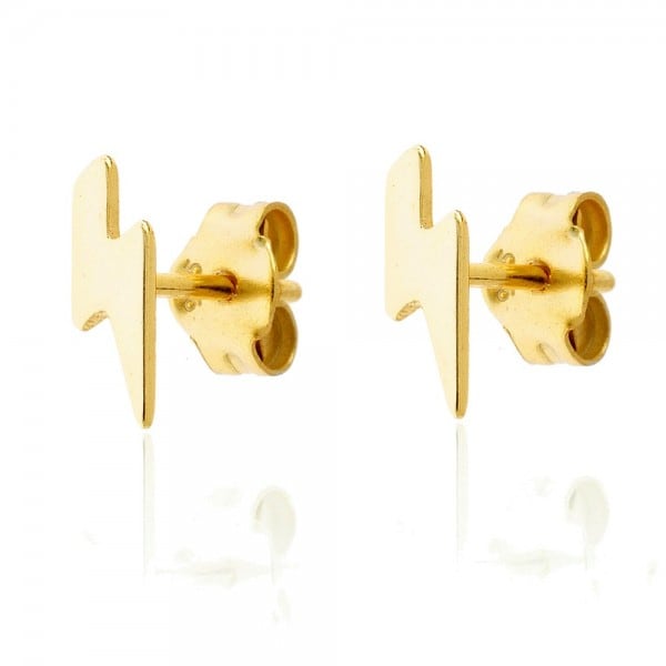 Pendientes mini en plata de ley chapados en oro con forma de rayo