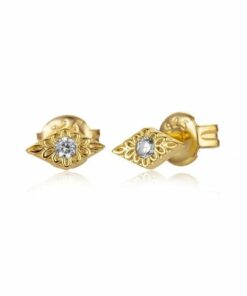 Pendientes mini en plata de ley chapados en oro con forma de rombo y circonita central