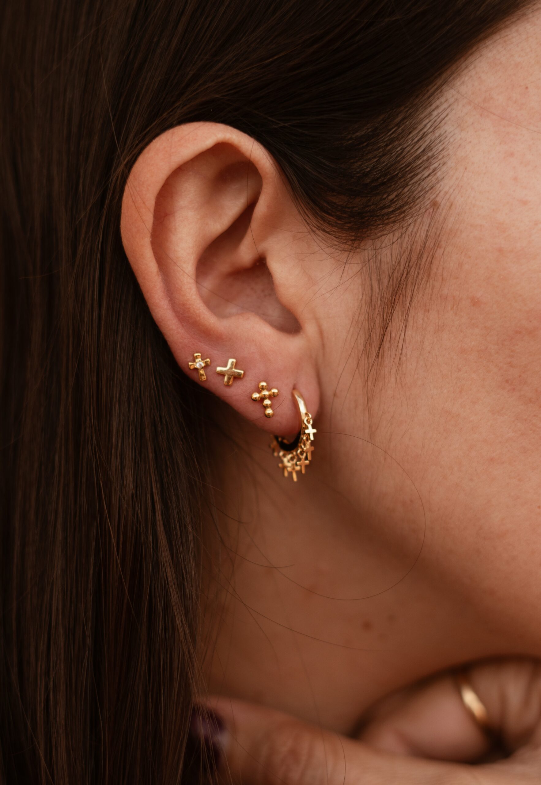 Pendientes mini en plata de ley chapados en oro con forma de «X»