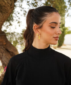 Pendientes en plata de ley chapado en oro con tres eslabones colgando, siendo el primero de esmalte color amarillo flúor.