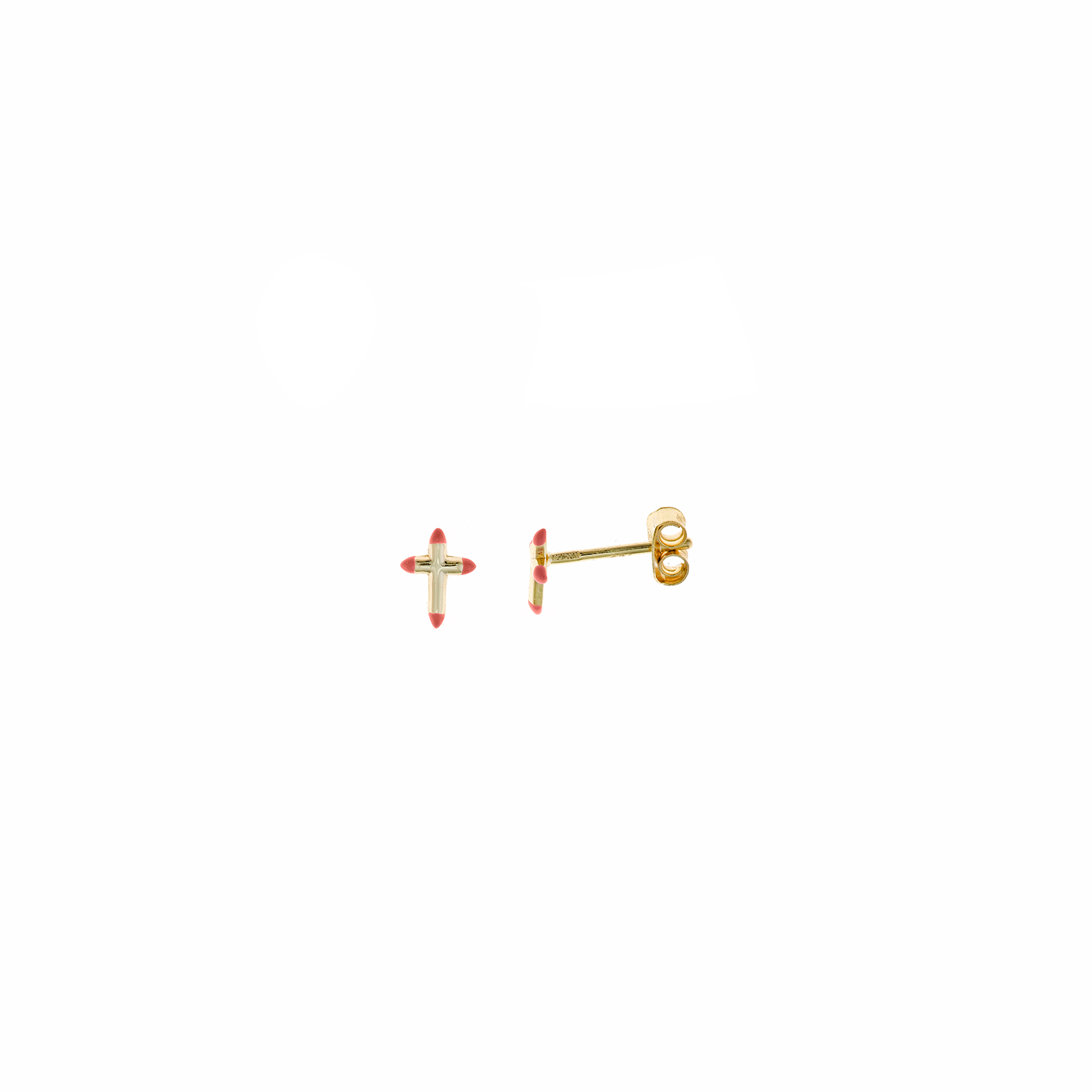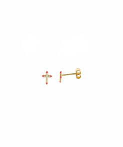 Pendientes en plata de ley chapados en forma de cruz mini con esmalte de color coral.