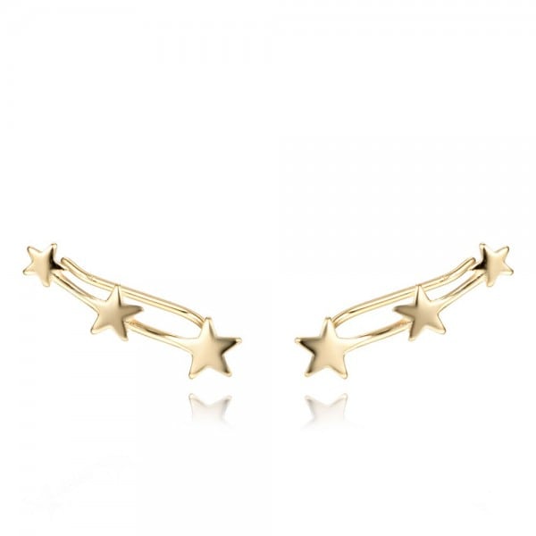 Pendientes trepadores en plata de ley chapados en oro con tres estrellas