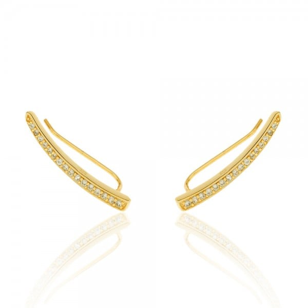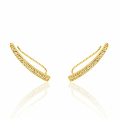 Pendientes trepadores en plata de ley chapados en oro con forma de barra y circonitas