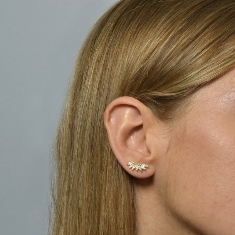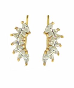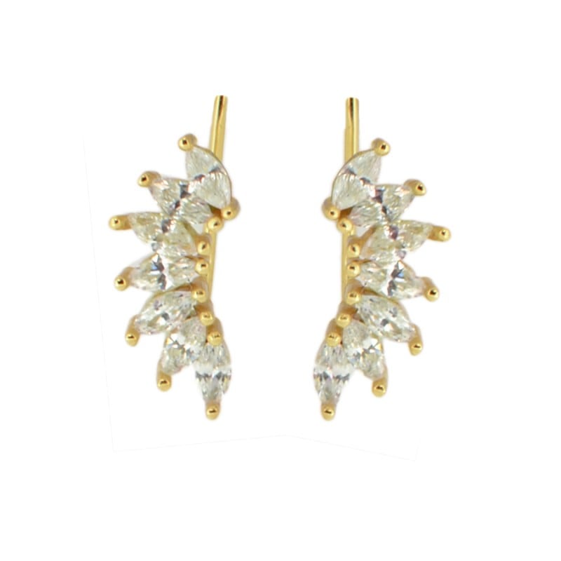 Pendientes trepadores en plata de ley chapados en oro con siete circonitas en forma de lanzaderas