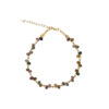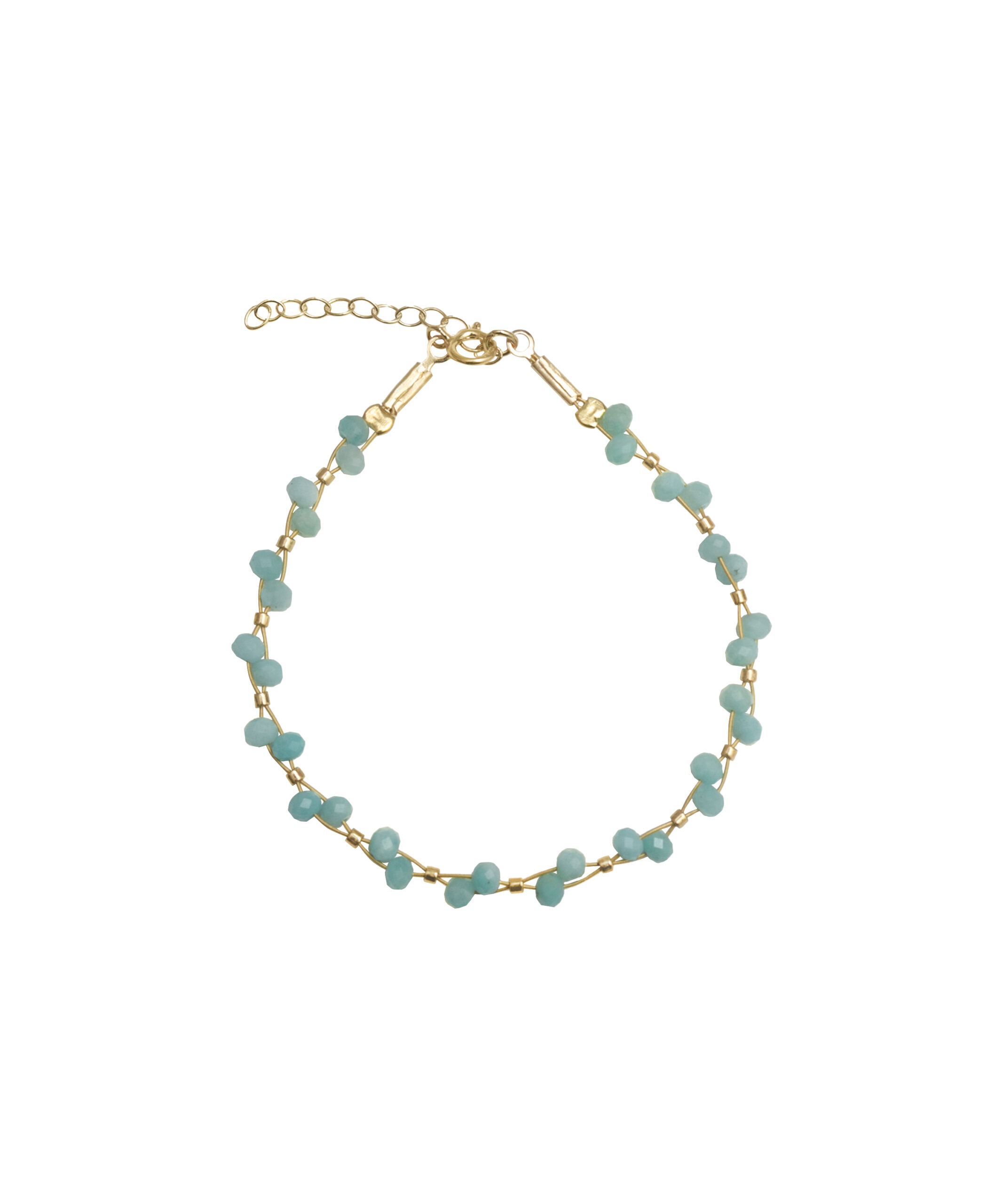 Pulsera en plata de ley chapada en oro con un trenzado de piedras amazonita en todo su recorrido.