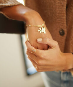 Pulsera en plata de ley chapada en oro con tres colgante en forma de cruz ,cruz latina y sol con circonita negra central y cadena de eslabones