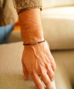 Pulsera en plata de ley y cuero marrón redondo con tramos chapados en oro rosa y tramos con baño de rutenio.