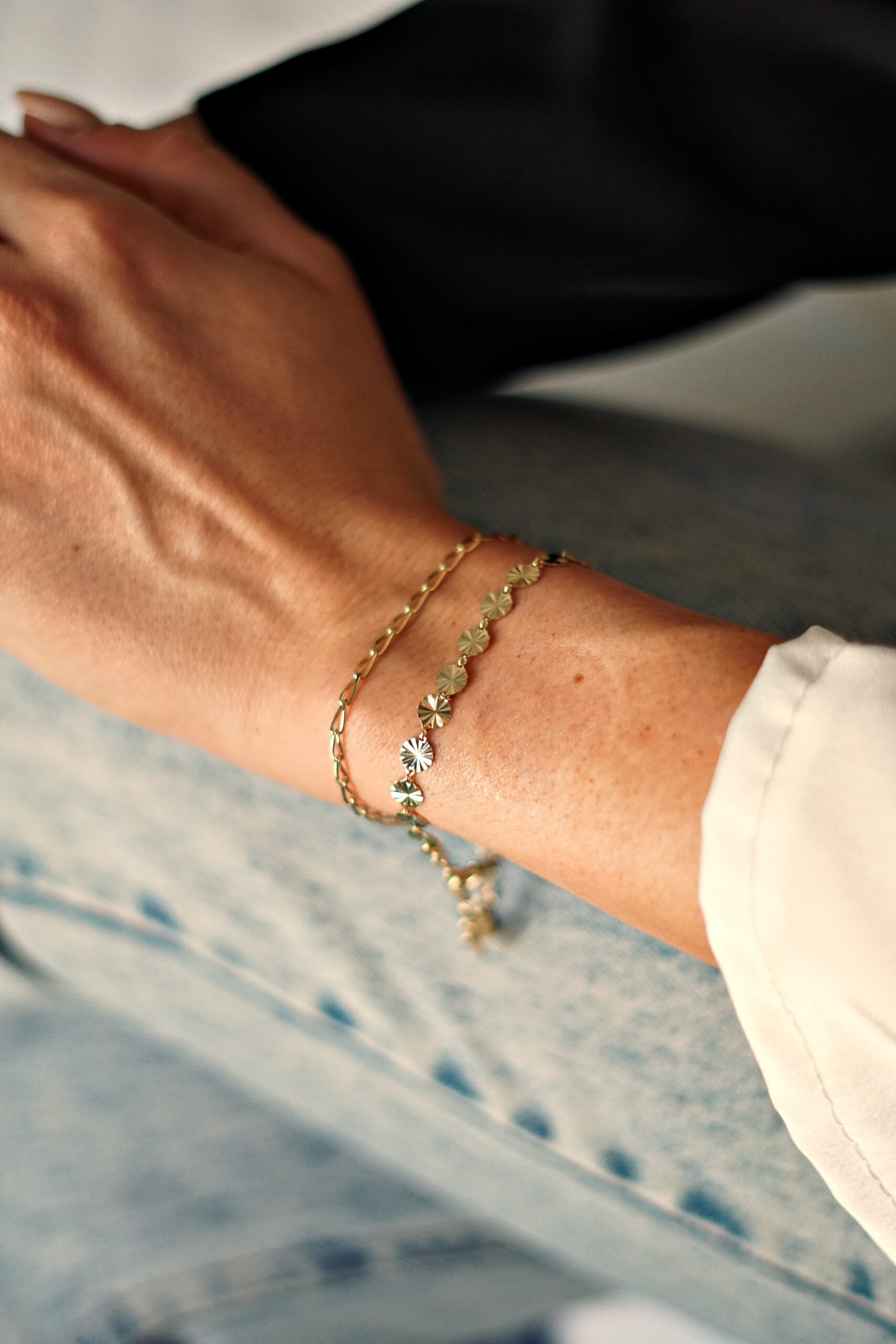 Pulsera en plata de ley chapada en oro de eslabones tipo fígaro.