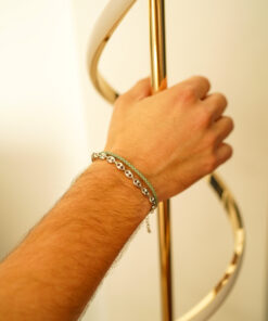 Pulsera doble de cadena de calabrotes en plata de ley y cuero verde.
