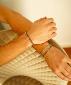 Pulsera doble de tipo rolo en plata de ley y cuero verde.
