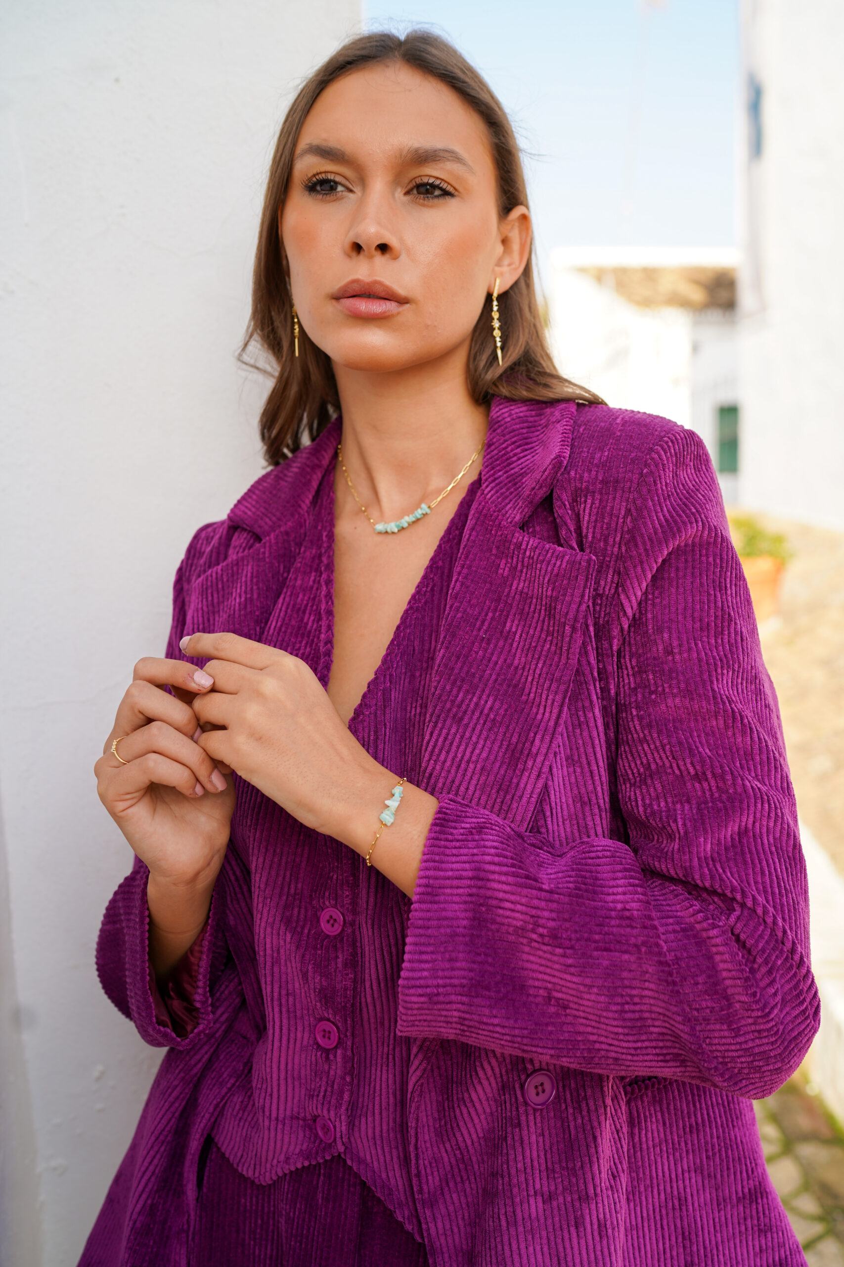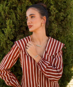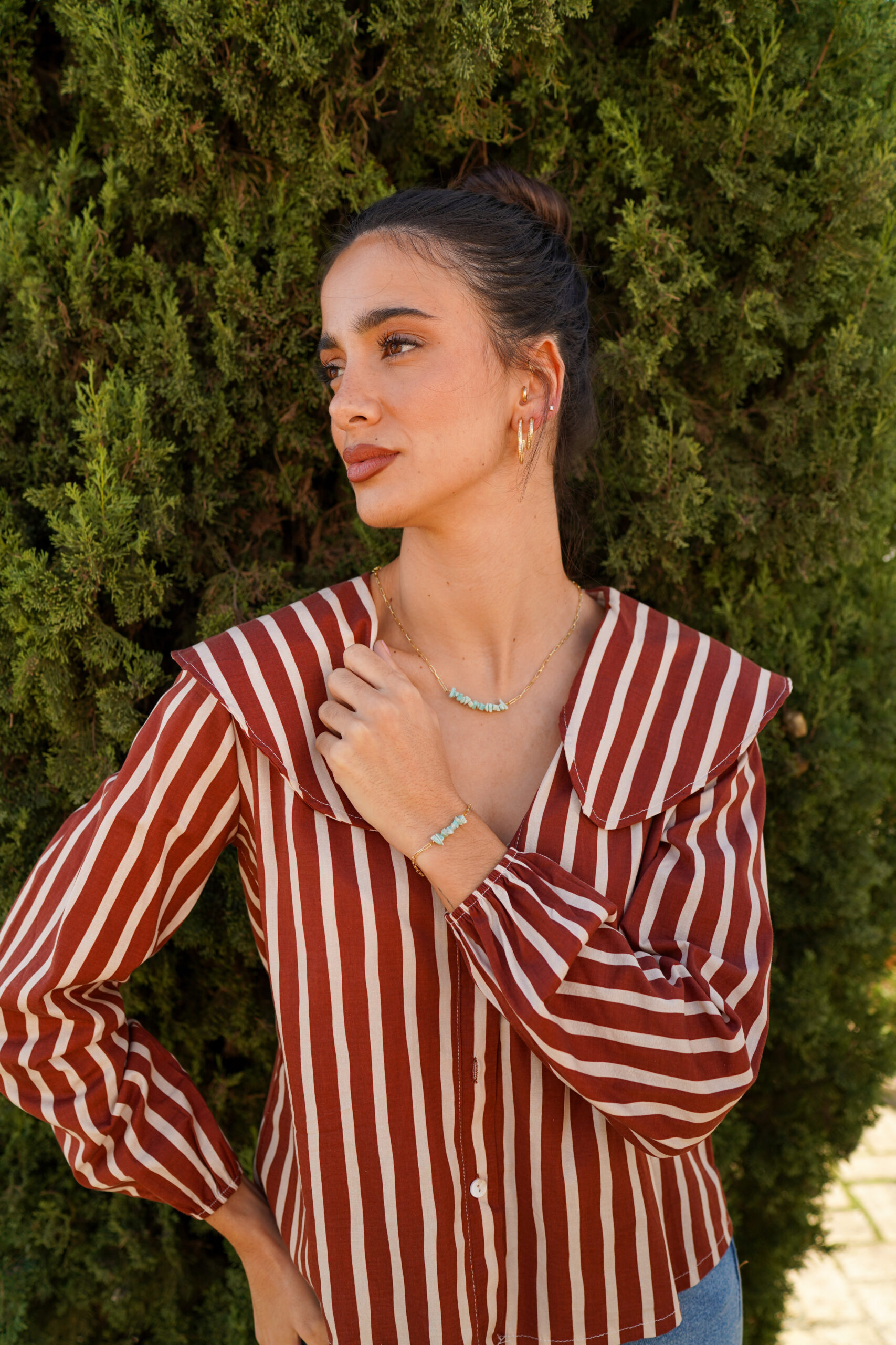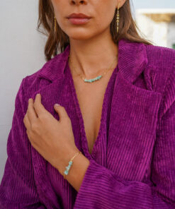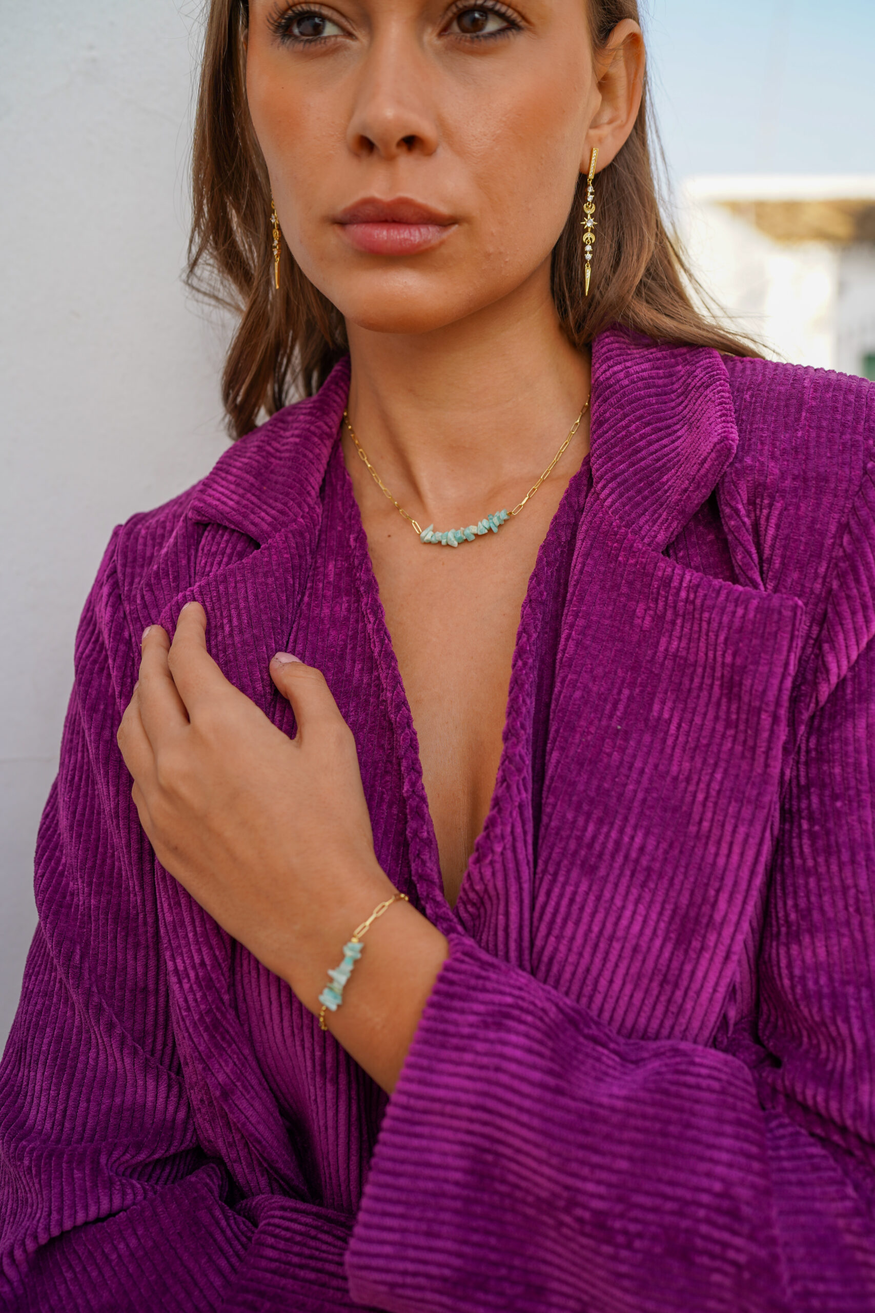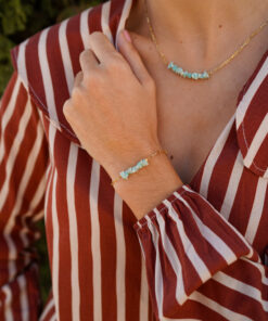 Pulsera en plata de ley chapada en oro con centro de piedras amazonita irregulares y cadena de eslabones.