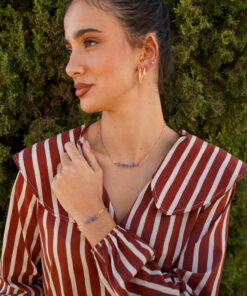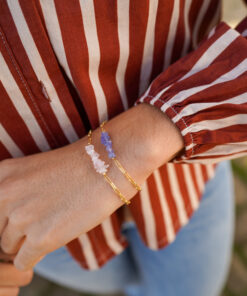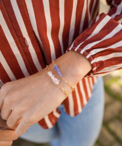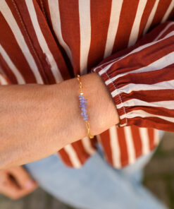 Pulsera en plata de ley chapada en oro con centro de piedras tanzanita irregulares y cadena de eslabones.
