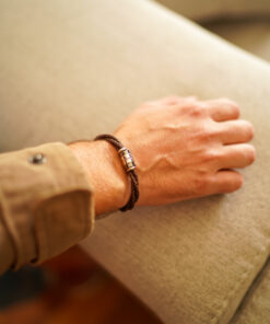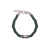 Pulsera en plata de ley y cuero trenzado con cuatro discos en el centro.