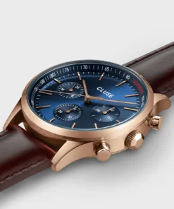 Reloj CLUSE Anthéor Multifunction Watch Leather Blue, Rose Gold Colour