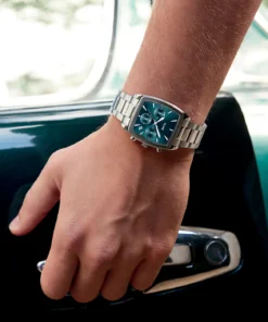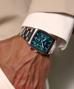 El reloj para hombre Quartaut Chrono posee una característica combinación de fuerza y lujo. Posee una caja tonneau estilizada de color plateado, una correa de 3 eslabones de acero inoxidable y una esfera azul con 3 subesferas. Diseñado a la perfección, ofrece tanta comodidad como estilo. Para ajustar la correa, te recomendamos que acudas a tu joyero.