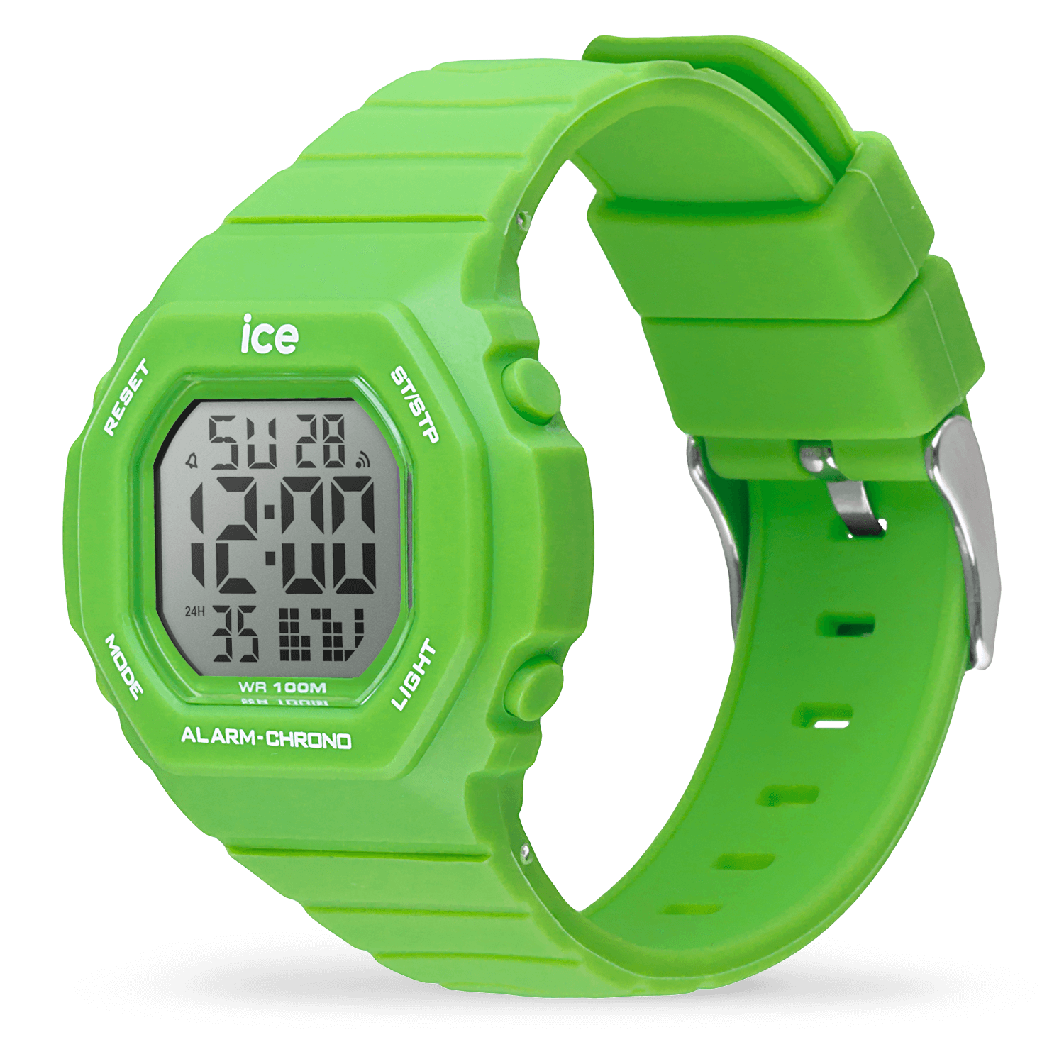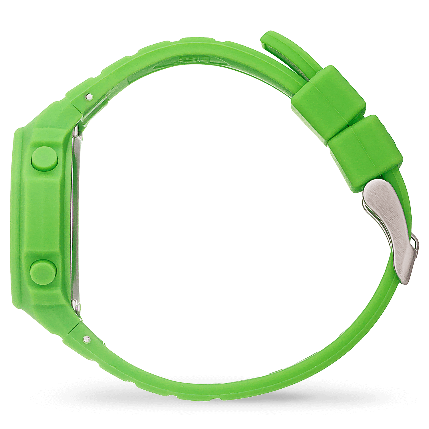 ¡Mejora tu outfit diario con un toque de color con las ICE digit ultra – Green! ¡Su aspecto deportivo y moderno quedará perfecto tanto para muñecas femeninas como masculinas! Equipado con una resistencia al agua de 10 ATM, también cuenta con varias funciones como el cronómetro o la alarma.
