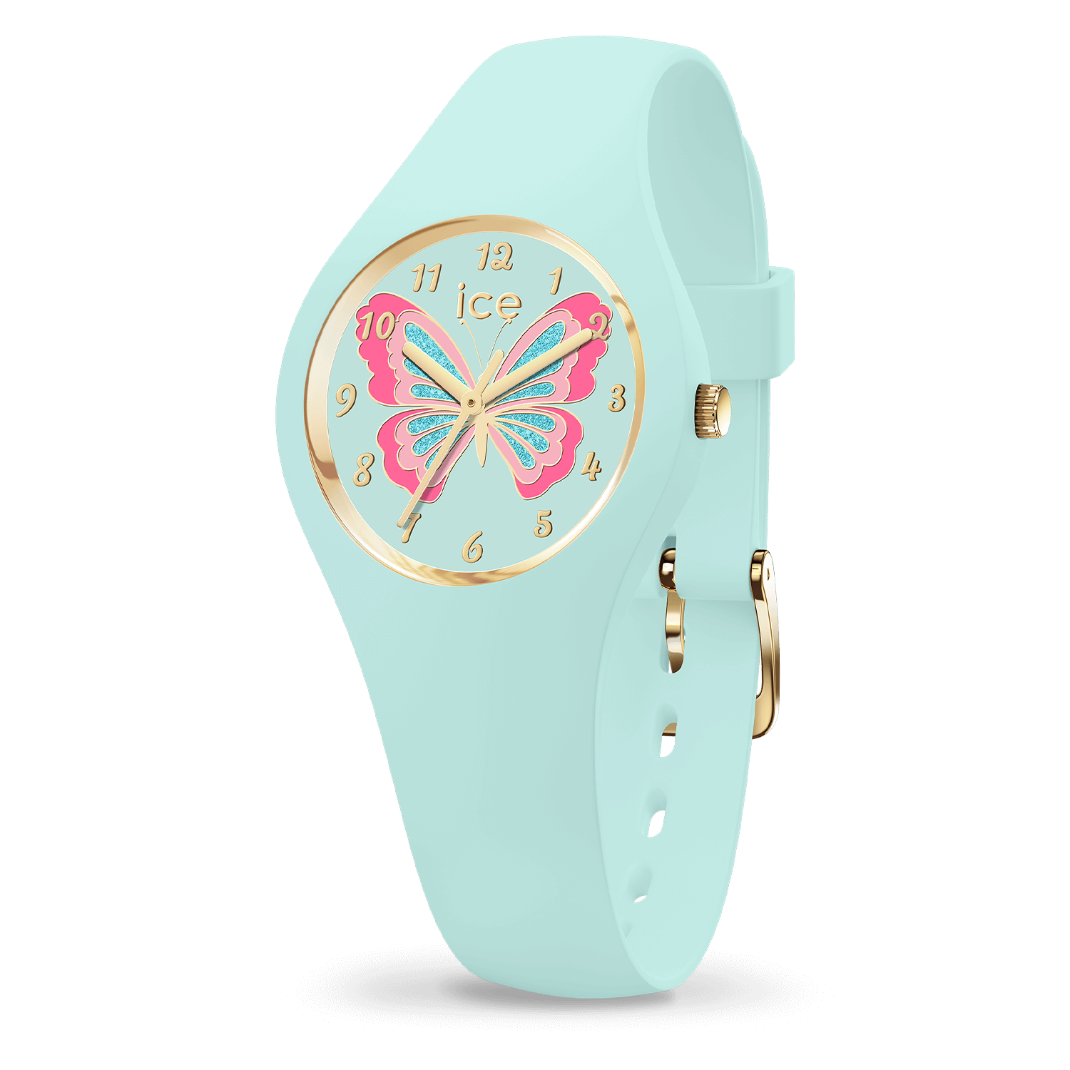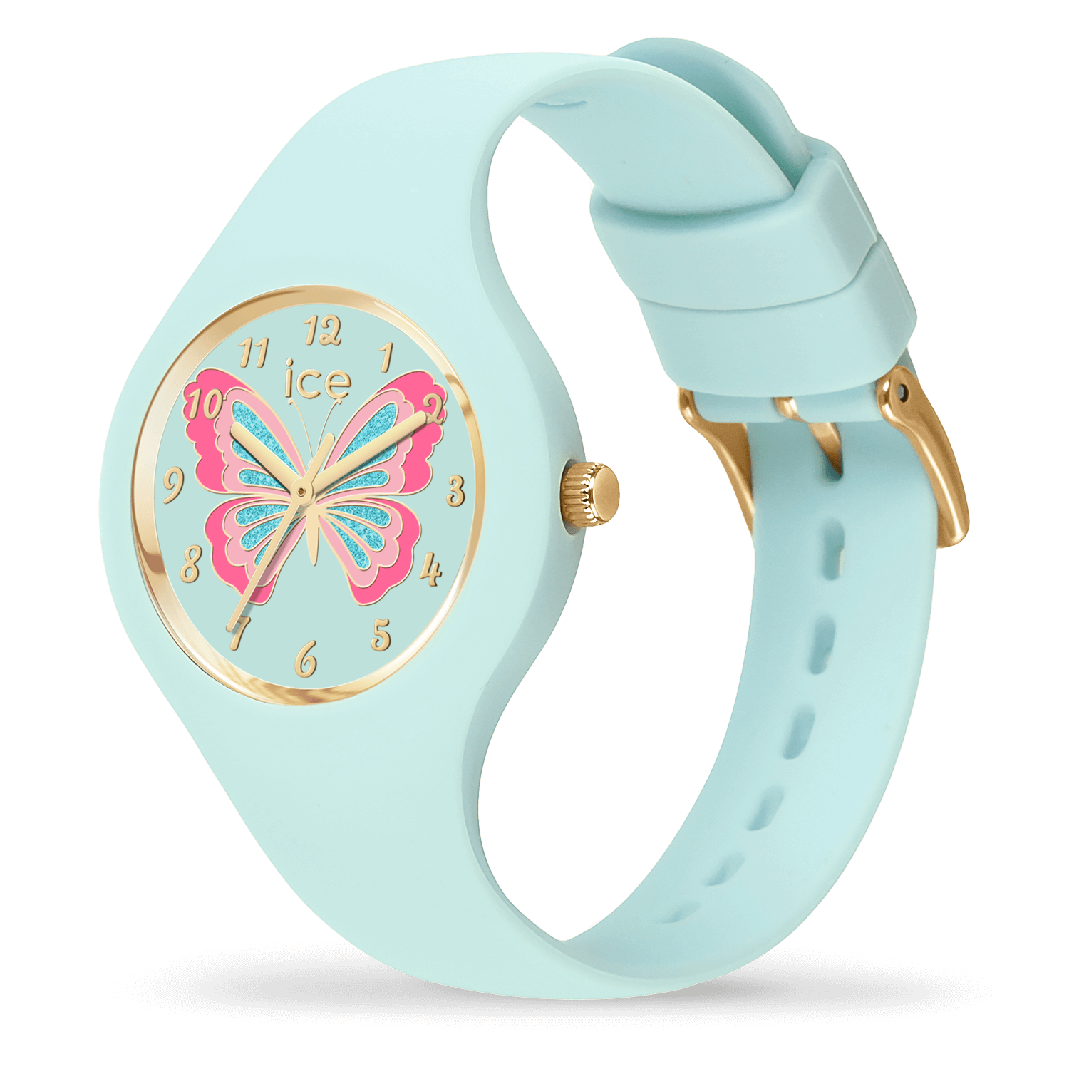 ¡Déjate seducir por la magia del reloj de fantasía ICE – Butterfly Bloom! ¡Este pequeño reloj azul y brillante adornado con una bonita mariposa rosa aportará un toque de modernidad y buen humor a las muñecas de tus hijos!.
